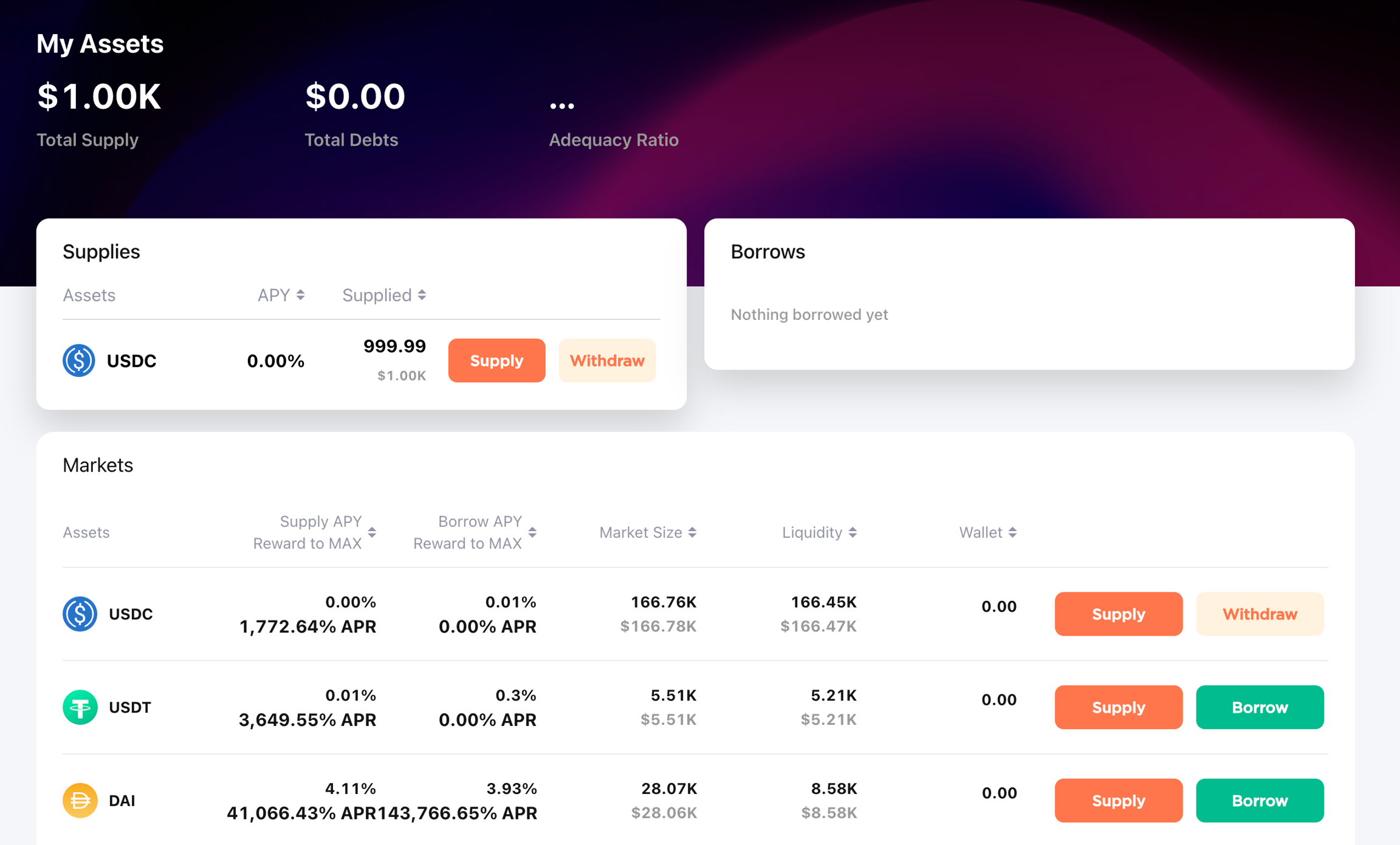 On the asset page, enter the deposit amount and choose to enable it as collateral if you plan to use the deposited assets as collateral for a loan.